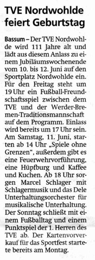 111 Jahre TVE Nordwohlde v. 1911 e. V.