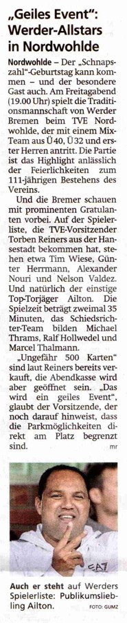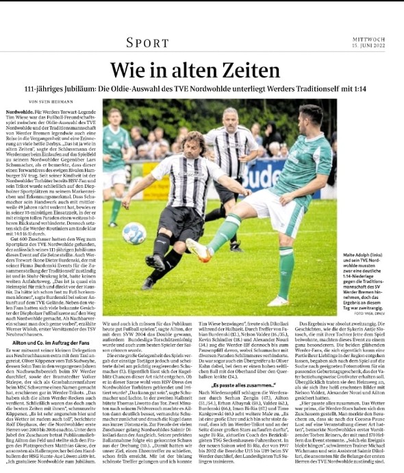Fußball-Freundschaftsspiel TVE Nordwolde (Oldie-Auswahl) vs. Werder Bremen (Traditionsmannschaft)