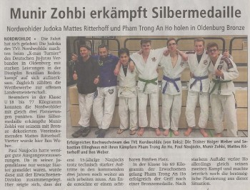 Besonders in der Klasse U 18 -77kg konnten die Nordwohlder mit gleich drei Platzierungen punkten. Eine Silbermedaille erkämpfte Munir Zohbi vor seinem mit Bronze dekorierten Vereinskameraden Mattes Ritterhoff. Vierter wurde hier Ben Weber.