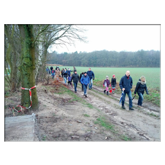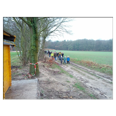 Während sich die Familien mit den kleinen Kindern die kürzere Strecke ausgesucht haben und schon bald Richtung „Stern“ gelaufen sind, hat sich der überwiegende Teilnehmerkreis für die längere Strecke entschieden und die Schleife über Sörhausen genommen.