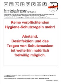 Die Corona-Regeln, nach denen wir Sport treiben dürfen, ändern sich fast wöchentlich. Aktuelle Informationen findet Ihr auf der Internetseite des Landkreises Diepholz. |
