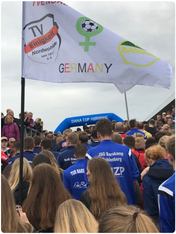 Die JSG Nordwohlde-Bassum wird mit einer eigens für den Dana Cup gefertigten Fahne präsentiert.