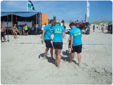 Am darauf folgenden Tag (Sonntag) war das Wetter richtig gut (kein Wind) und sie konnten "richtigen" Beach-Volleyball spielen. Sie konnten sich in ihrer 3er-Gruppe wieder als Sieger durchsetzen. Zu diesem Zeitpunkt stand fest, dass sie unter den ersten 4 Mannschaften landen würden. Sie mussten dann gegen einen anderen Gruppenersten antreten. Und, was soll man sagen, schon wieder gewonnen = Finaleinzug!!!