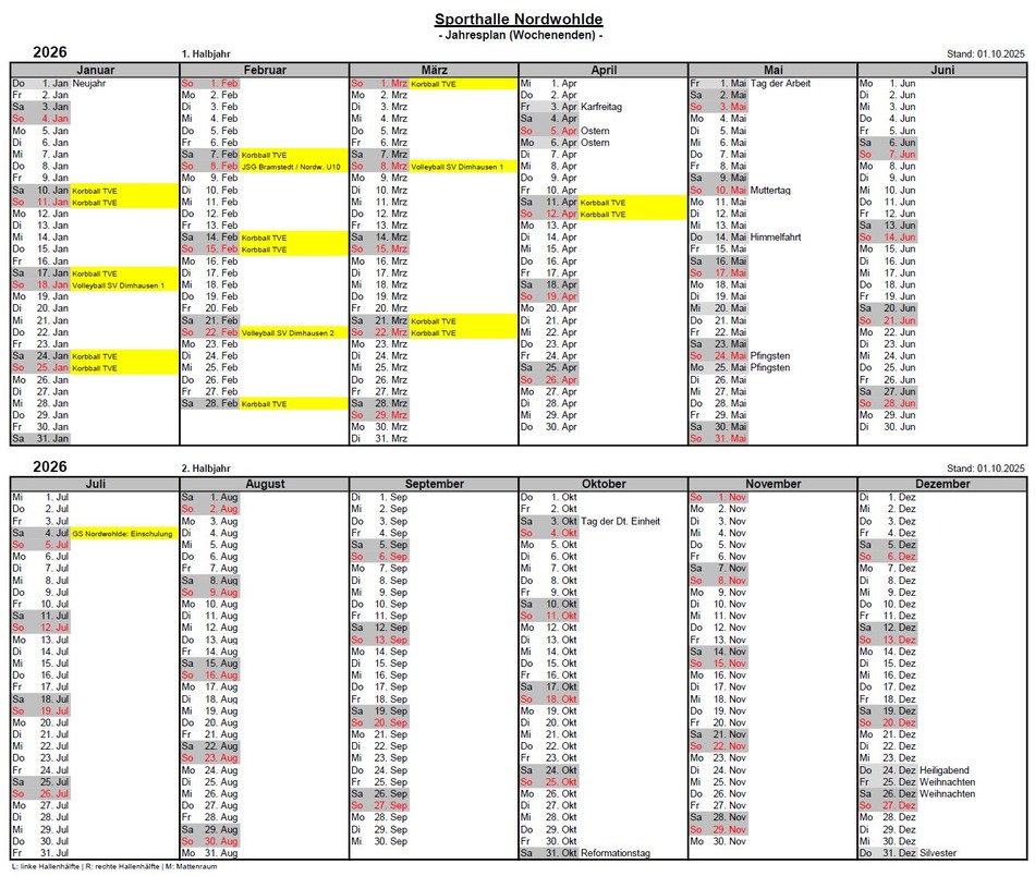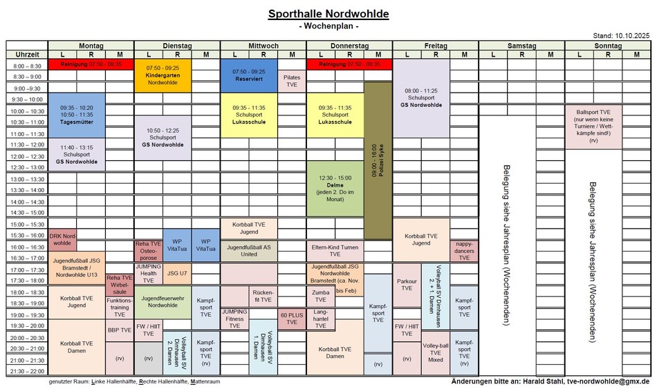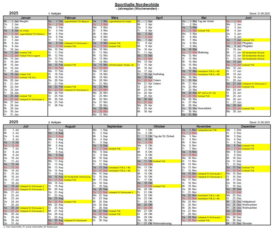 Belegungsplan Sporthalle Nordwohlde - Wochenplan und Jahrespläne