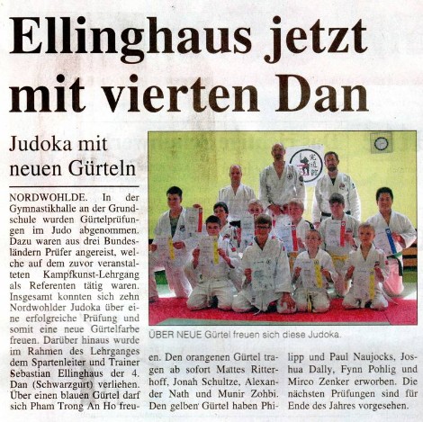 Nordwohlde. Am Sonntag, 15.07.2012, fanden in der Nordwohlder Gymnastikhalle an der Grund-schule Gürtelprüfungen im Judo statt. Dazu waren aus drei Bundesländern Prüfer angereist, welche auf dem zuvor durchgeführten Kampfkunst-Lehrgang auch als Referenten tätig waren.