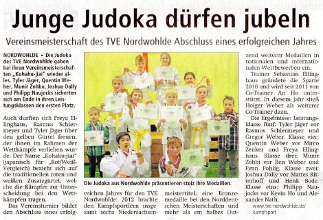 Das Vereinsturnier bildete den Abschluss eines überaus erfolgreichen Jahres für die Kampfsportler um das Trainerteam des TVE Nordwohlde. 2012 brachte den Nordwohldern insgesamt 6 Niedersachsenmeistertitel, eine Bronzemedaille bei den Norddeutschen Meisterschaften und mehr als ein halbes Dutzend weiterer Medaillen auf nationalen und internationalen Turnieren.