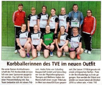 05.05.2018 Korbballerinnen in neuem OutfitNeue Trikots gesponsert von Schorling Baugeschäft GmbH und Physiotherapiepraxis Therapie und Wellness