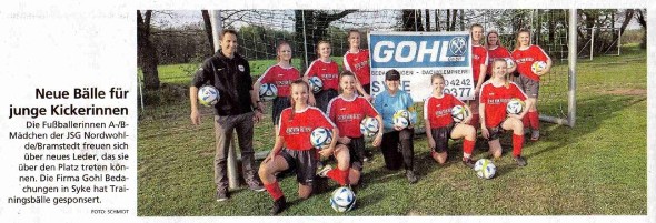 08.05.2019 Neue Bälle für A/B-JuniorinnenDie Firma Gohl Bedachungen sponsort neue Bälle für unsere jungen Kickerinnen