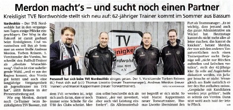 Andreas Merdon übernimmt beim TVE Nordwohlde, Thomas Liwotto wird Teammanager
