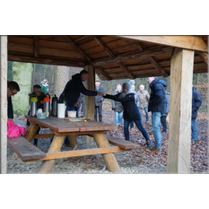 Am Zwischenstopp "Stern" gab es wieder Glühwein und heißen Apfelsaft. Zurück am Sportplatz gab es zusätzlich noch leckere Bratwürste. Auch die vierbeinigen Teilnehmer hatten sichtbar Spaß.
